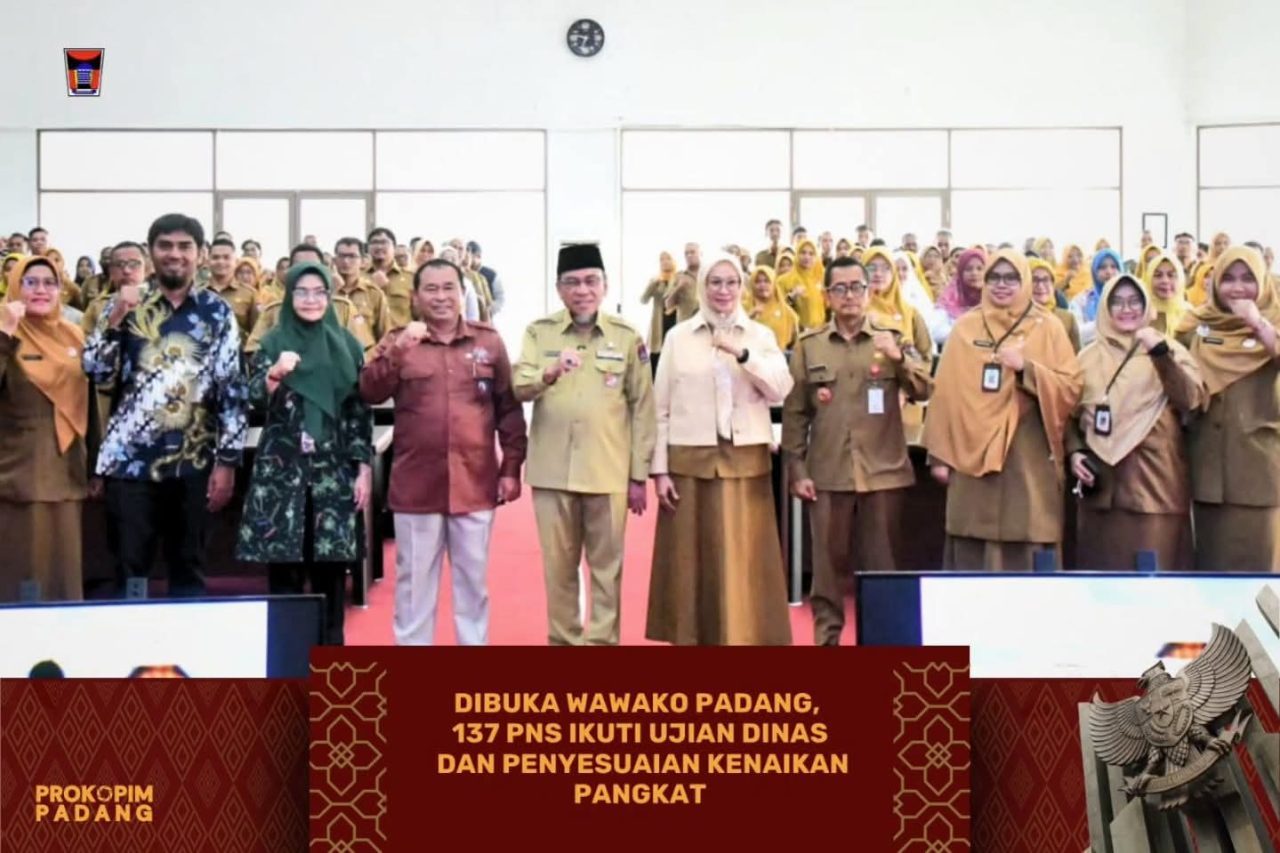Sebanyak 137 Pegawai Negeri Sipil (PNS) di lingkungan Pemerintah Kota Padang, mengikuti Ujian Dinas dan Ujian Penyesuaian Kenaikan Pangkat, yang digelar di Ruang Bagindo Aziz Chan, Balai Kota Aie Pacah, Senin (13/10/2025).
