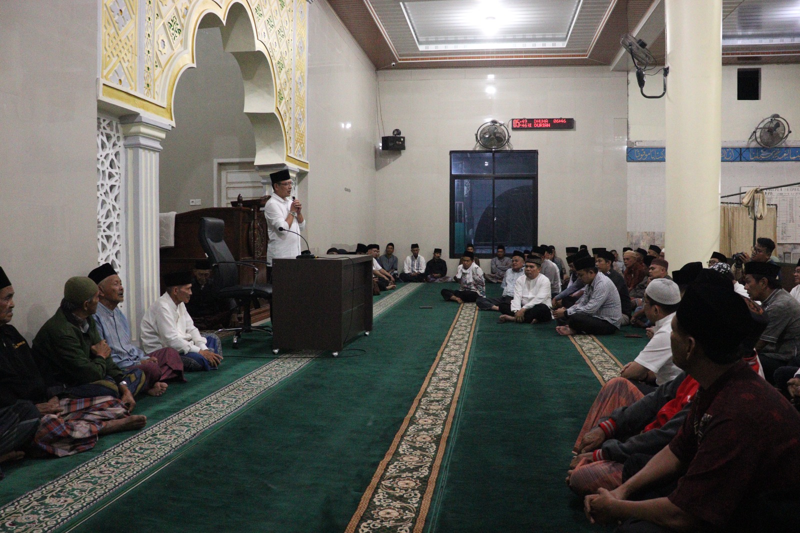 Wali Kota Payakumbuh Zulmaeta menampung aspirasi masyarakat Kelurahan Sungai Durian, Kecamatan Lamposi Tigo Nagori saat melaksanakan Salat Subuh berjamaah di Masjid Arruhamak, Rabu (12/03/2025).