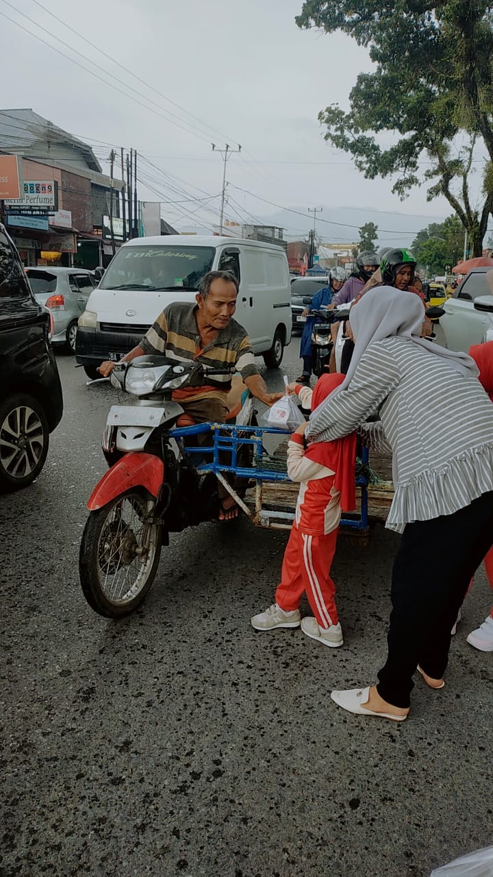 Menutup kegiatan Pesantren Ramadhan yang telah di laksanakan dari awal Maret lalu, murid – murid dan guru TK Melati Ikhlas, Wisma Indah 2 Lapai, Kecamatan Nanggalo, Kota Padang berbagi takjil bagi pengguna jalan.