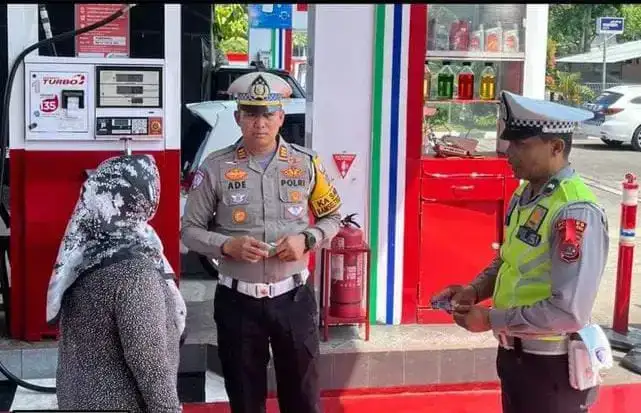 Mengantisipasi antrian di SPBU Kapuh Tarusan, Kecamatan Koto XI Tarusan, Kabupaten Pesisir Selatan, Kabupaten Pesisir Selatan, Kasat Lantas AKP Ade Saputra, S.H., M.H, Mnggu (15/3/2026) turun melakukan koordinasi strategis dengan pengelola SPBU. Agendanya penyampaian imbauan khusus terkait kesiapan pelayanan bahan bakar bagi pemudik.