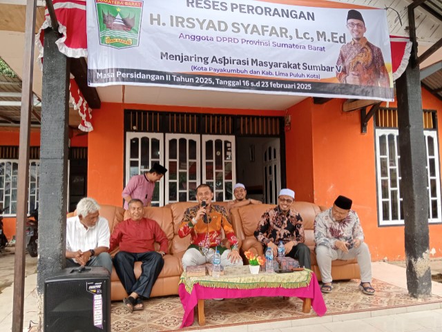 Anggota DPRD Provinsi Sumatera Barat, Irsyad Safar, melaksanakan reses di halaman Kantor DPD PKS Kabupaten Limapuluh Kota pada Minggu (23/2/2025).