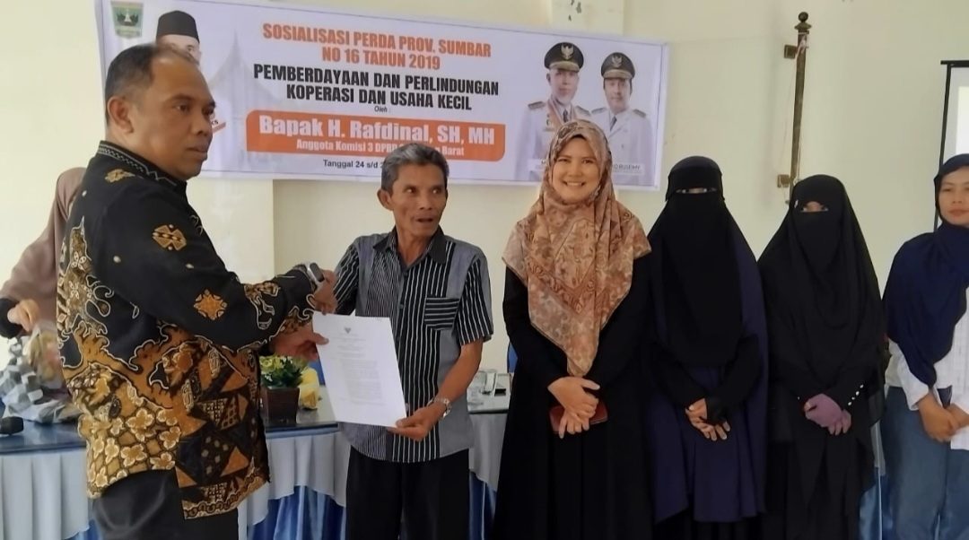 Anggota Komisi III DPRD Sumatera Barat, H. Rafdinal, menggelar Sosialisasi Peraturan Daerah (Perda) Nomor 16 Tahun 2019 tentang Pemberdayaan dan Perlindungan Koperasi serta Usaha Kecil di Aula Camat Banuhampu, Kabupaten Agam, Sabtu (25/10/2025). Kegiatan ini bertujuan meningkatkan pemahaman pelaku usaha terhadap kebijakan daerah dan memperkuat daya saing ekonomi masyarakat.