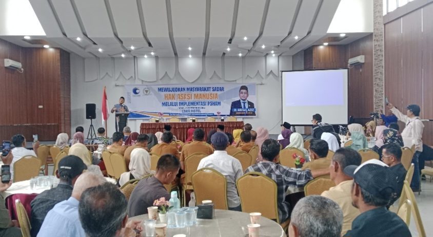 Anggota Komisi XIII DPR RI Arisal Azis mensosialisasikan kepada masyarakat sadar hukum HAM, melalui P5HAM (Penghormatan, Perlindungan, Pemajuan, Penegakan, dan Pemenuhan Hak Asasi Manusi), Senin (15/9/2025 ) di Emir Hotel, Lubuk Sikaping, Kabupaten Pasaman.