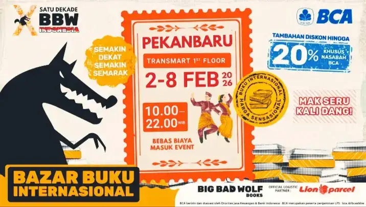 “Kehadiran Big Bad Wolf Books di Pekanbaru untuk pertama kalinya menjadi langkah penting dalam misi kami menjadikan buku lebih dekat dan mudah diakses oleh semua kalangan. Setiap kota memiliki karakter dan semangat membaca yang unik, dan kami melihat potensi besar di Pekanbaru,” ujar Andrew Yap, Founder Big Bad Wolf Books.