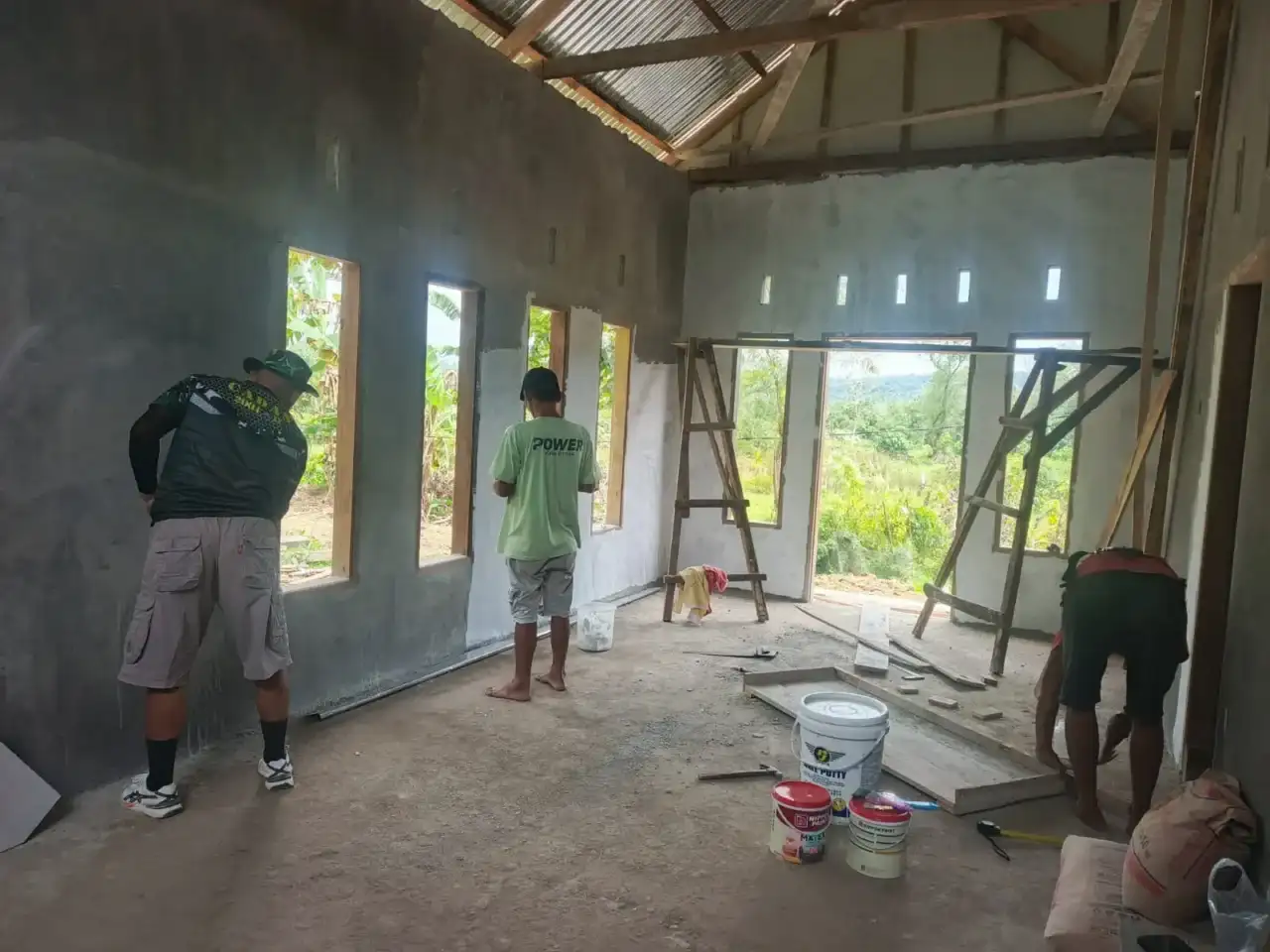 Pembangunan Rehab RTLH milik Afri Yuliana warga Kampung Bukit Tambun Tulang Nagari Gurun Panjang Utara melaksanakan pemasangan dempul bagian dalam sebelum dilakukan pengecatan oleh personil Satgas TMMD Ke-127 Tahun 2026 Kodim 0311/Pessel, pada Kamis (26/2/2026).