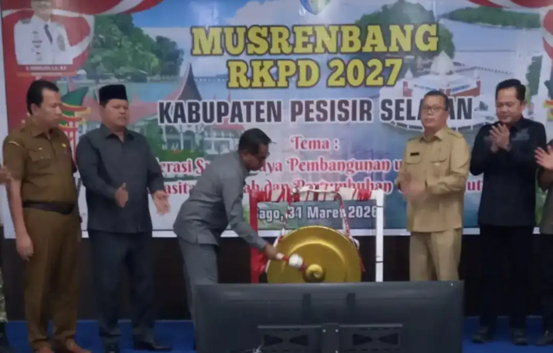 Wakil Bupati Pesisir Selatan, Risnaldi Ibrahim, secara resmi membuka kegiatan Musyawarah Perencanaan Pembangunan Rencana Kerja Pemerintah Daerah (Musrenbang RKPD) Kabupaten Pesisir Selatan Tahun 2027 yang digelar di Ruang Rapat Madeh Bapedalitbang, Sago, Selasa (31/3/2026).