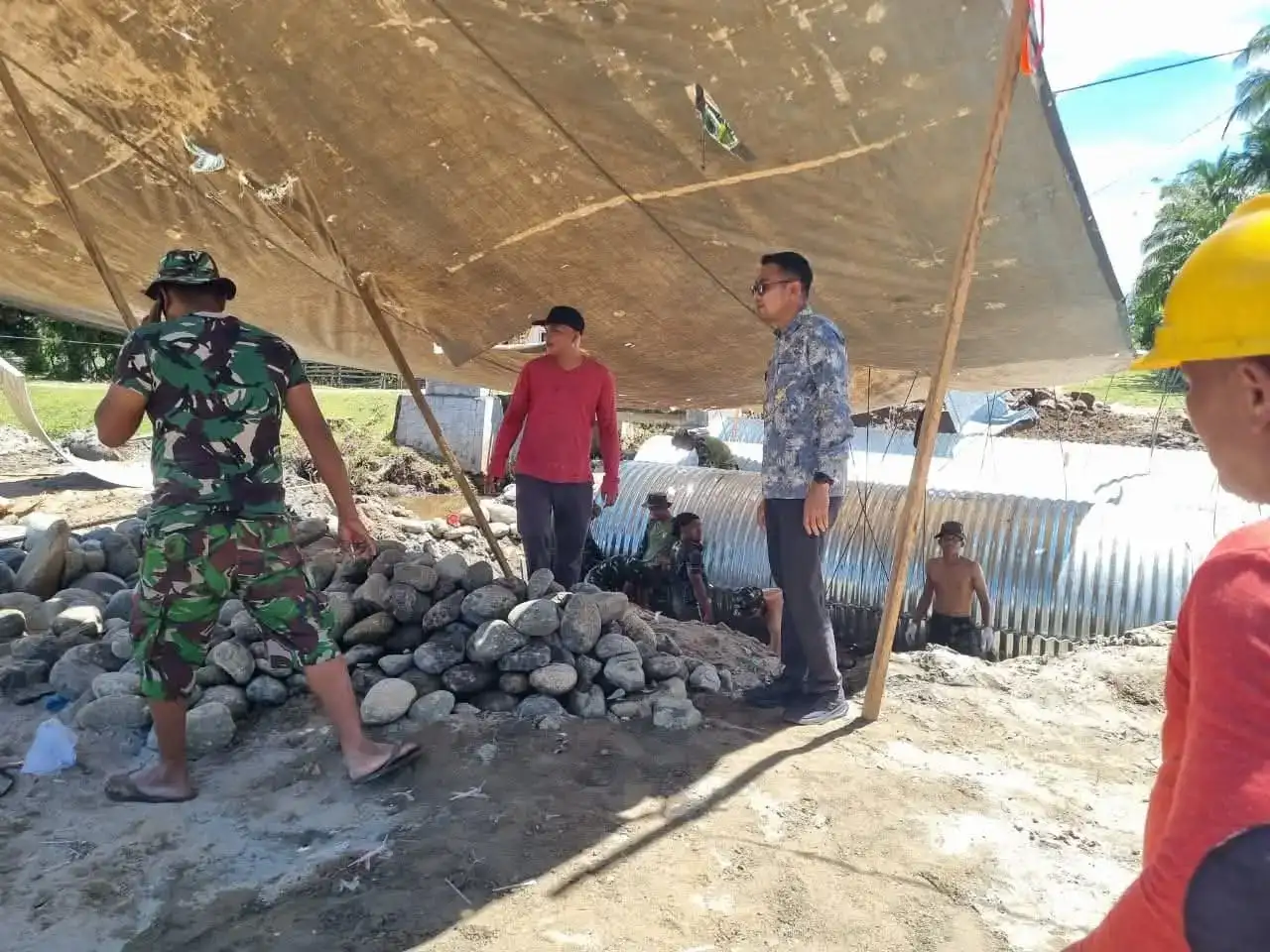 Camat Linggo Sari Baganti Tinjau Pembangunan Jembatan Aramco di Muara Gadang Air Haji