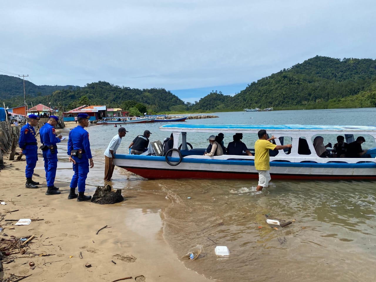 Kehadiran polisi hingga ke pulau menandakan mereka bekerja sepenuh hati, bahkan dihari liburpun masih tetap menjaga dan mengawasi masyarakat yang tengah berlibur. (Gilang)