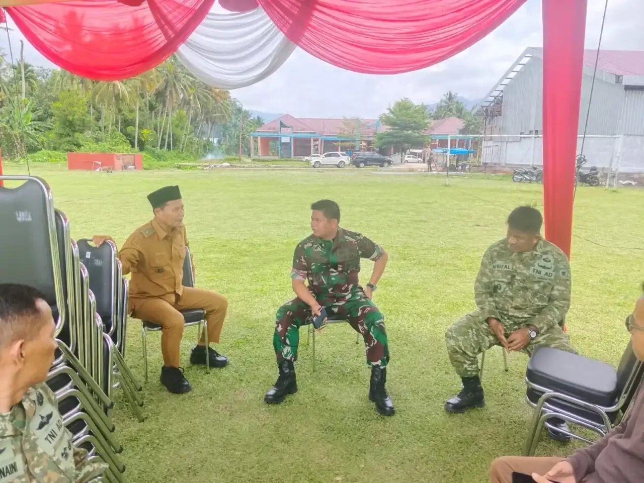 Komandan Kodim 0311/Pessel Letkol Czi Theodurus Sambua ST.,M.Han meninjau kesiapan lapangan upacara untuk penutupan TMMD Ke-127 di Nagari Koto Berapak, Kecamatan Bayang, Kabupaten Pesisir Selatan pada Selasa (10/3/2026). Penutupan TMMD akan berlangsung Rabu (11/3/2026).