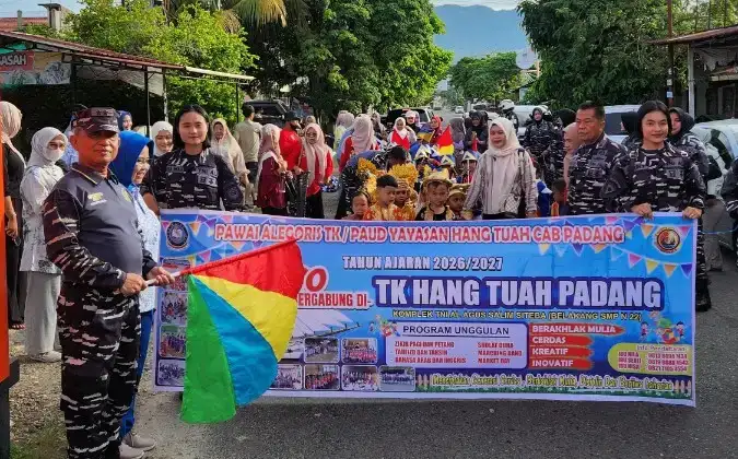 Komandan Komando Daerah TNI Angkatan Laut II Laksamana Muda TNI Sarimpunan Tanjung didampingi Ketua Daerah Kodaeral II Gabungan Jalasenastri Koarmada RI Ibu Endang Sarimpunan Tanjung menghadiri Pawai Alegoris Taman Kanak-kanak dan PAUD Yayasan Hang Tuah Cab. Padang Kodaeral II pada Sabtu, 7 Pebruari 2026 di wilayah Siteba-Nanggalo Kota Padang.
