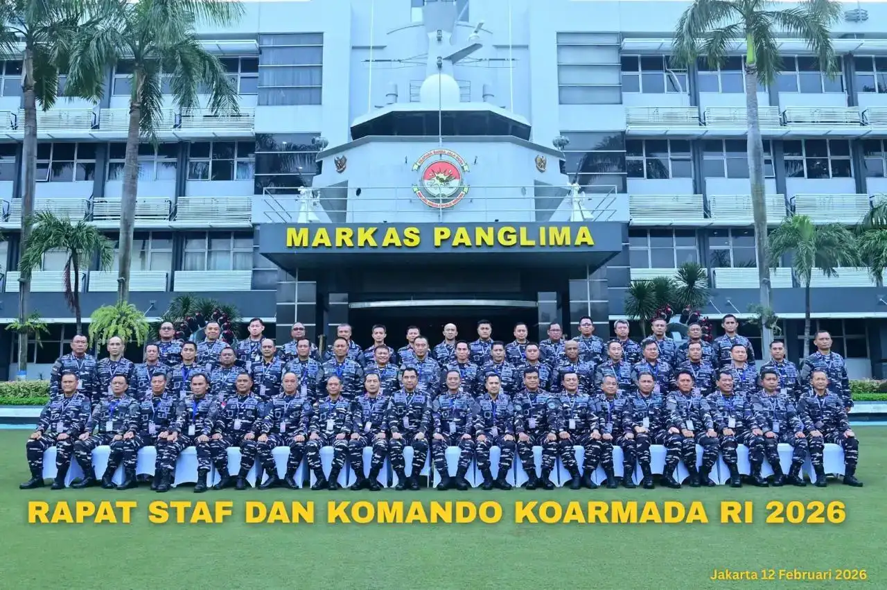 Komandan Komando Daerah TNI Angkatan Laut lI (Dankodaeral II), Laksamana Muda TNl Sarimpunan Tanjung, menghadiri Rapat Staf dan Komando (Rasko) Koarmada RI Tahun 2026 yang dibuka Panglima Komando Armada Republik Indonesia (Koarmada RI), Laksamana Madya TNI Dr. Denih Hendrata bertempat di GOR O.B. Syaaf, Mako Koarmada Rl Jakarta, Kamis (12/2/2026).