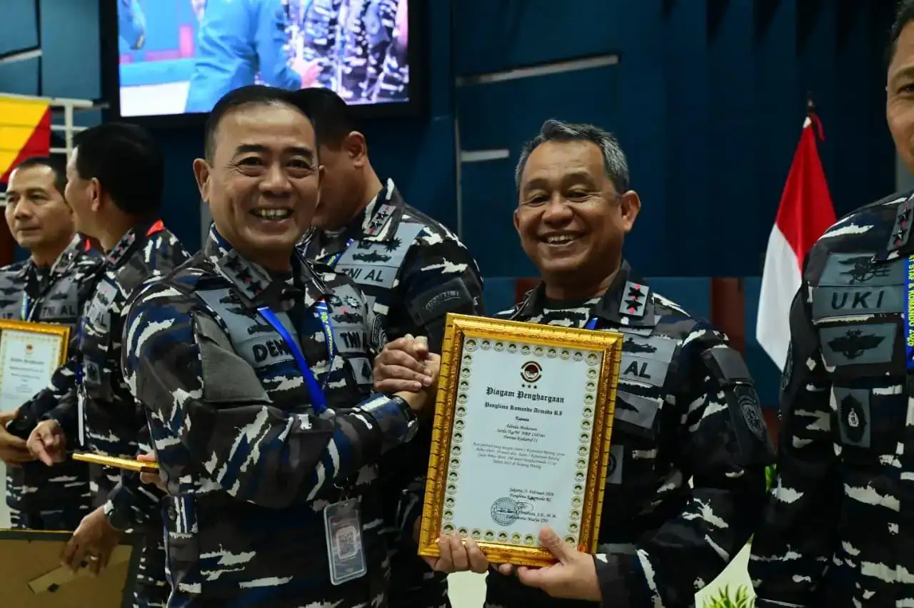 Panglima Koarmada RI Laksamana Madya TNI Dr. Denih Hendrata memberikan Piagam Penghargaan kepada Dankodaeral II Laksamana Muda TNl Sarimpunan Tanjung