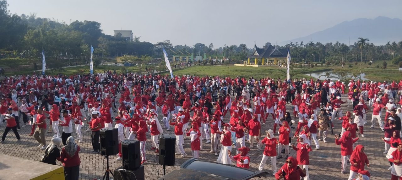 Dalam Rangkaian Peringatan Hari Kemerdekaan Republik Indonesia Ke 80 Tahun, Bupati Limapuluh Kota H. Safni membuka kegiatan Senam Sehat Kemerdekaan yang digelar Pemkab Limapuluh Kota bekerja sama dengan Bank Nagari, PMI, BPJS Ketenagakerjaan, dan Komix, di Ruang Terbuka Hijau (RTH) Mahkota Berlian, Minggu (10/8/2025).