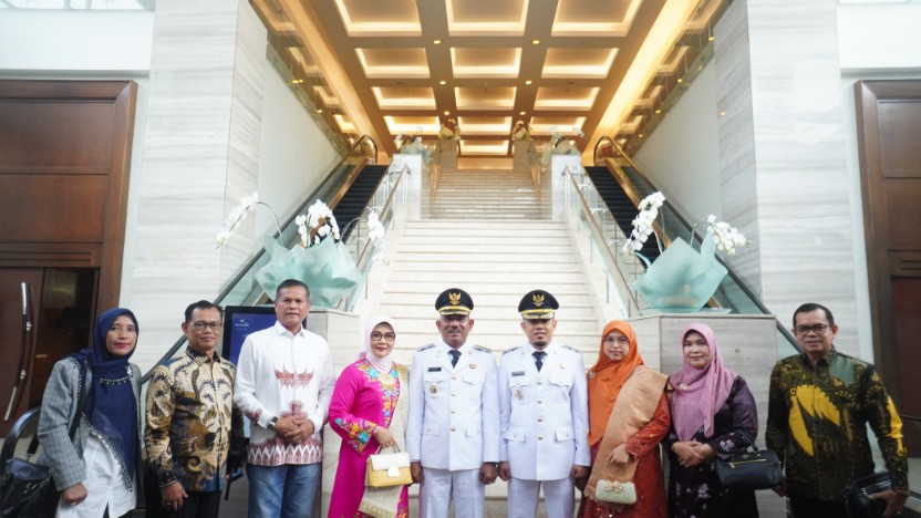 Bupati Limapuluh Kota Safni Sikumbang dan.Wakil Bupati Ahlul Badrito bersama Gubernur Mahyeldi dan Wakil Gubernur Vasko Ruseimy, masing-masing bersama keluarga.