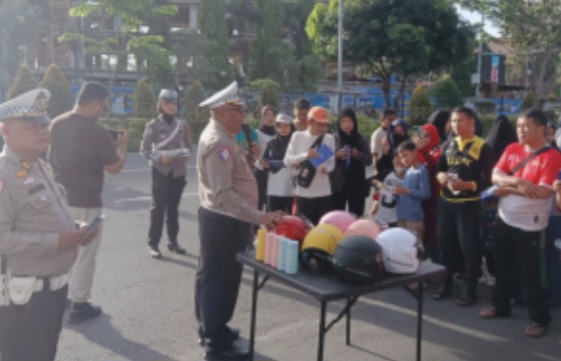 “Kami mensosialisasikan tata tertib berlalu lintas, membagikan brosur himbauan, tumbler, hingga puluhan helm SNI secara gratis kepada pengunjung CFD,” jelas AKBP Dasril.