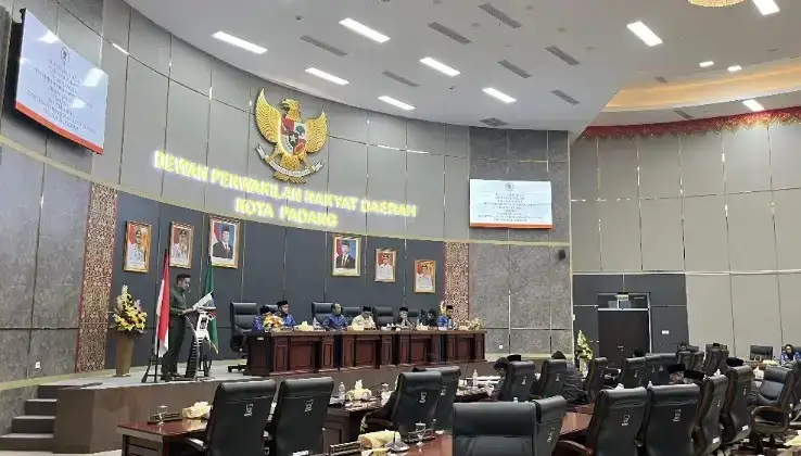 Dewan Perwakilan Rakyat Daerah (DPRD) Kota Padang menggelar Rapat Paripurna dalam rangka penyampaian pendapat akhir fraksi-fraksi terhadap Rancangan Peraturan Daerah (Ranperda) Kota Padang, Senin (17/11/2025).