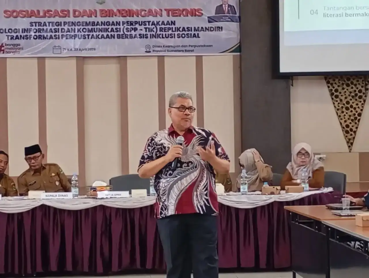 Komitmen tersebut disampaikan Muhidi saat menjadi narasumber pada kegiatan Sosialisasi dan Bimbingan Teknis Strategi Pengembangan Perpustakaan dan Teknologi Informasi dan Komunikasi (SPP-TIK) yang digelar di Aula Dinas Kearsipan dan Perpustakaan Provinsi Sumatera Barat, Selasa (21/4/2026).