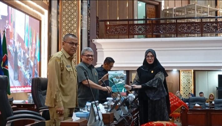 Rapat paripurna dipimpin Ketua DPRD provinsi Sumatera Barat, Muhidi dan disampingi wakil Ketua DPRD Provinsi Sumatera Barat, Evi Yandri Rajo Budiman, Senin (11/8/2025).