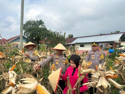 Kapolres Payakumbuh AKBP Ricky Ricardo, S.I.K.S.H.M.H didampingi Ketua Bhayangkari Cabang Payakumbuh Ny Mega Ricky Ricardo, melaksanakan kegaiatan panen tanaman jagung yang berlokasi di lahan sekitaran Mapolres Payakumbuh, Kamis (20/02/2025).