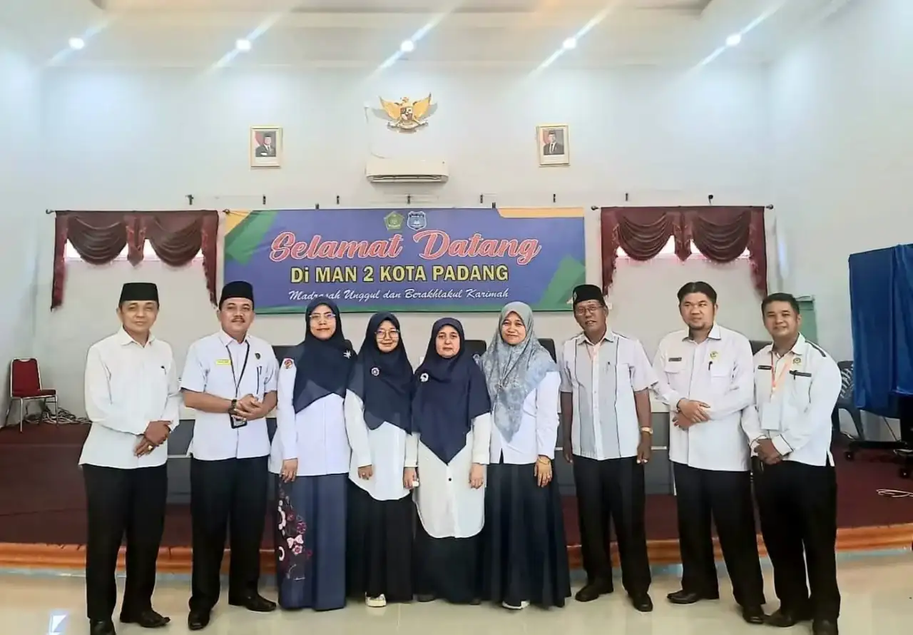Suasana haru dan bahagia menyelimuti Aula Abu Bakar Shiddiq Madrasah Aliyah Negeri (MAN) 2 Padang, Selasa (31/3/2026). Enam guru dilepas untuk menunaikan ibadah haji 1447 Hijriah.