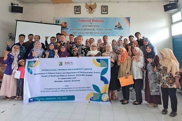 Fakultas Ilmu Sosial dan Ilmu Politik Universitas Andalas (FISIP Unand) melaksanakan Program Pengabdian Internasional bertema penguatan kompetensi ASN. Acara ini berlangsung Kamis (11/9/2025) di Aula PSBGHI Dinas Sosial Sumbar.