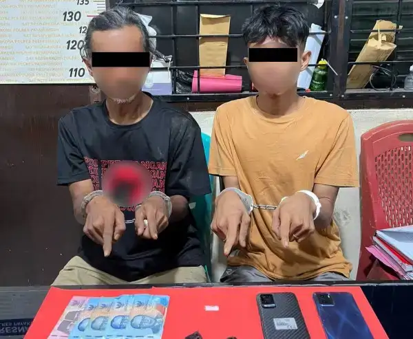 Dua orang yang ditangkap berinisial AE (54) dan HF (25) beserta barang bukti satu paket narkotika sabu – sabu seberat 0,13 gram.