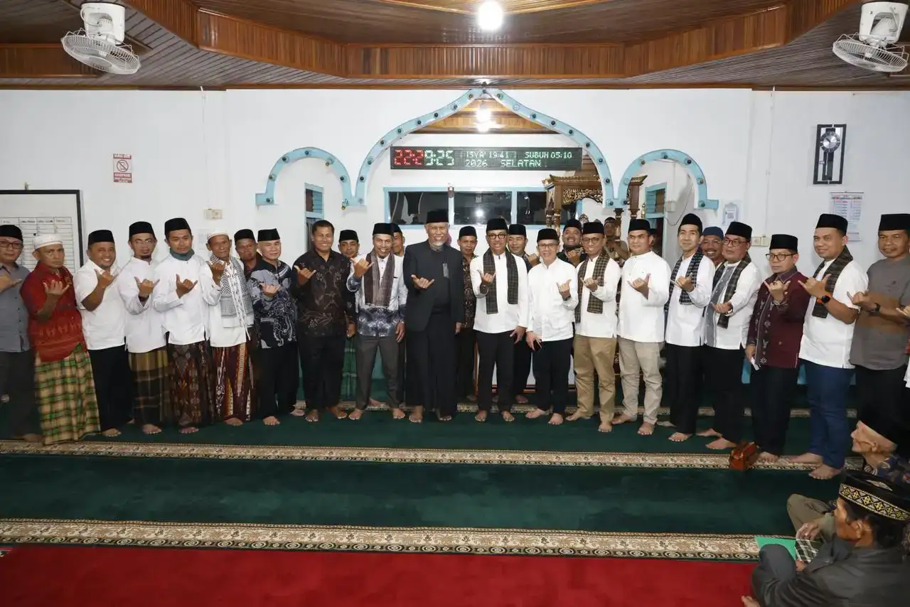 Gubernur Sumatera Barat (Sumbar), Mahyeldi Ansharullah mengakhiri kegiatan Safari Ramadannya di Kabupaten Solok Selatan dengan mengunjungi dan menyerahkan bantuan di Masjid Baiturrahman, Liki Lubuk Gadang, Sabtu (7/3/2026).