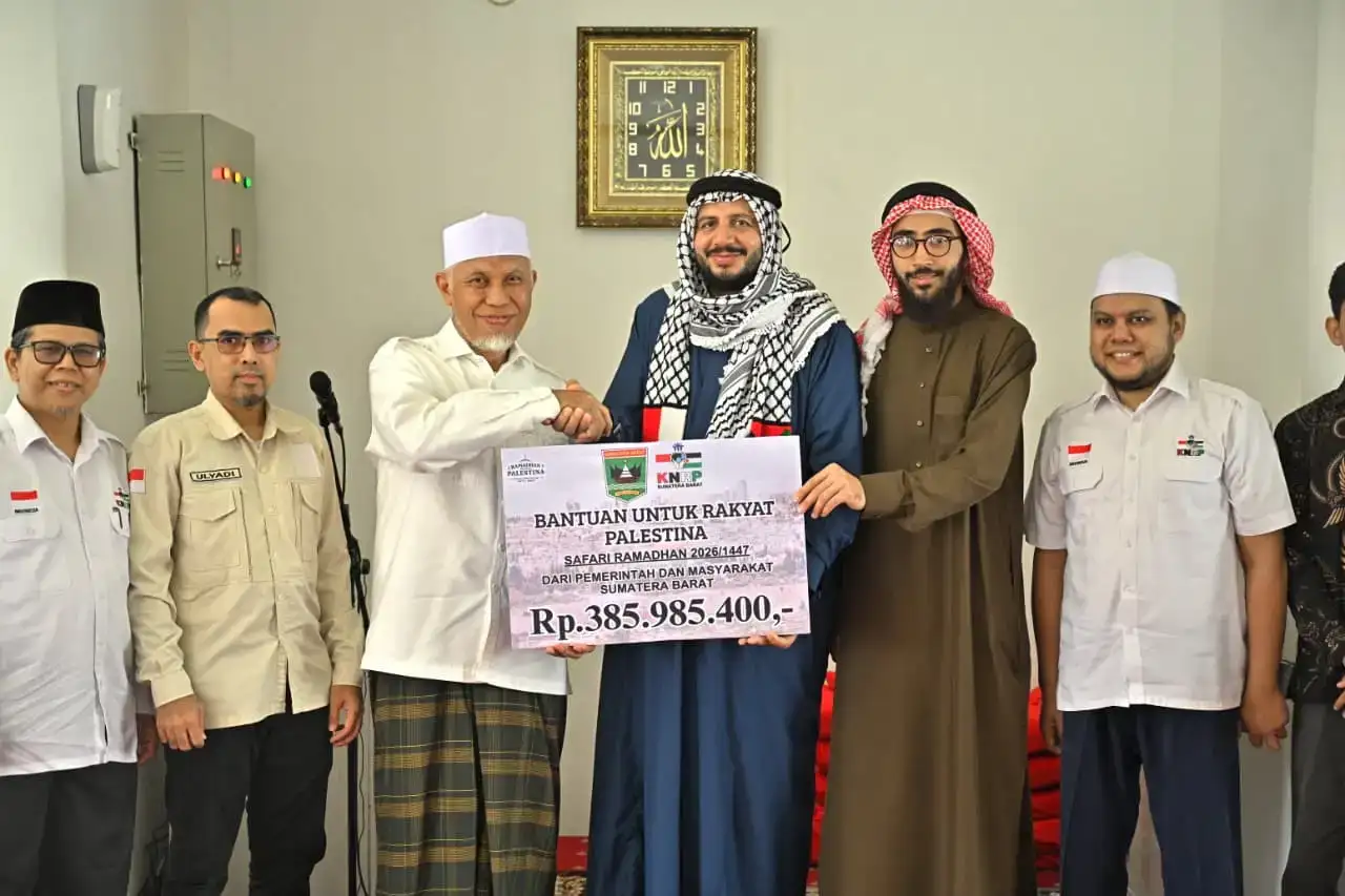 Gubernur Sumatera Barat (Sumbar), Mahyeldi Ansharullah secara simbolis menyerahkan bantuan kemanusiaan dari pemerintah dan masyarakat Sumbar untuk rakyat Palestina dengan total nilai sebesar Rp385.985.400. Penyerahan bantuan tersebut berlangsung di Surau Ansharullah, Kompleks Istana Gubernuran, Padang, Rabu (4/3/2026).