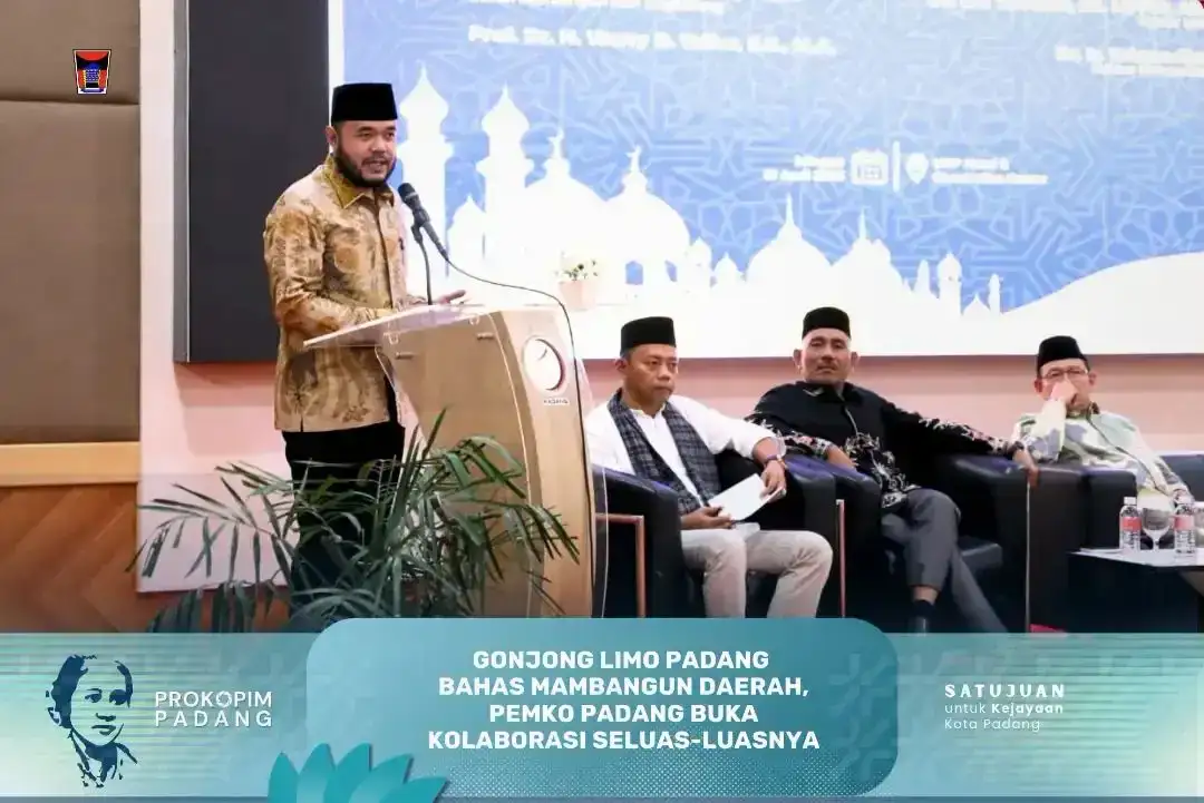 Wali Kota Padang Fadly Amran menghadiri acara halal bihalal Gonjong Limo Padang yang digelar di ruang convention Universitas Negeri Padang Hotel, Minggu (19/4/2026). Kegiatan ini menjadi ajang silaturahmi para perantau asal Kota Payakumbuh dan Kabupaten Lima Puluh Kota yang berada di Kota Padang.