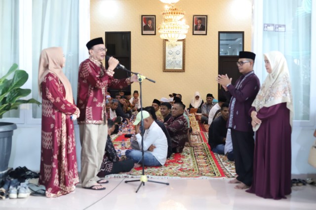 Bupati Pesisir Selatan, Hendrajoni bersama istri Lisda Hendrajoni menggelar acara buka puasa bersama dengan tim pemenangan di Rumah Dinas Bupati pada Senin (24/3/2025). Hadir bersama Wakil Bupati Risnaldi bersama istri.