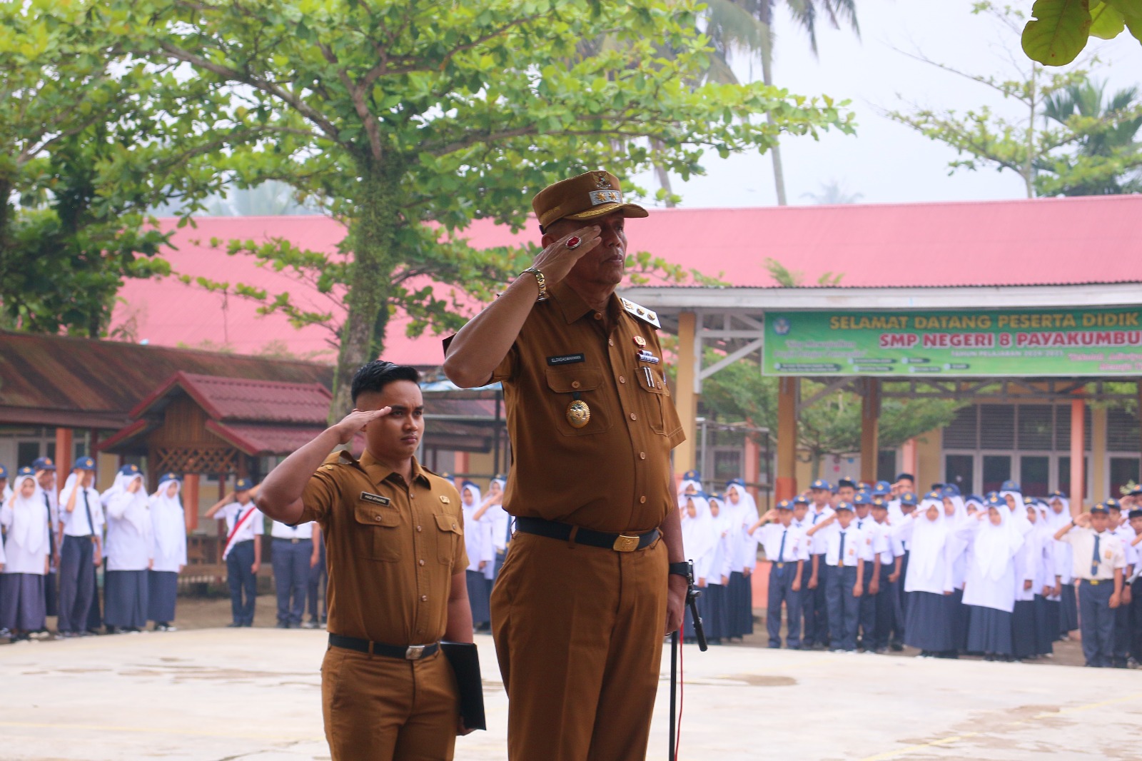 Wakil Wali Kota Payakumbuh Elzadaswarman menjadi pembina upacara bendera di SMP Negeri 8 Payakumbuh, Senin (14/4/2025).