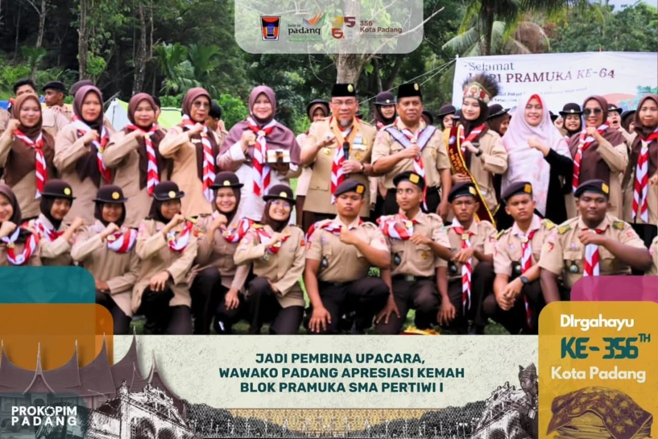Wakil Wali Kota Padang Maigus Nasir bertindak sebagai pembina upacara pada kegiatan Kemah Blok Pramuka SMA Pertiwi 1 Padang yang digelar di ABG Camp, Lubuk Minturun, Kecamatan Koto Tangah, Sabtu (23/8/2025).