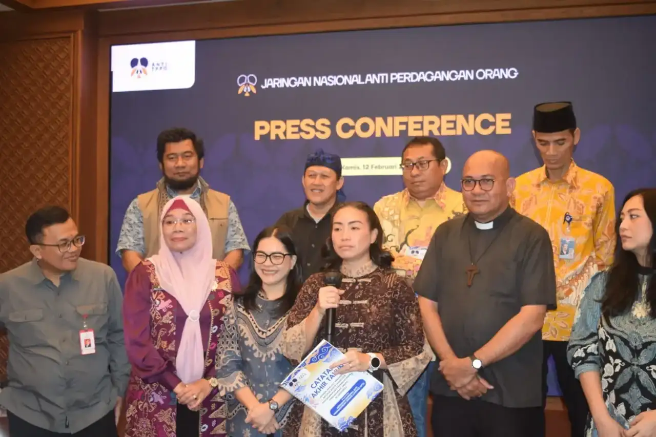 Jaringan Nasional Anti-Tindak Pidana Perdagangan Orang (JarNas Anti-TPPO) merilis Catatan Akhir Tahun (CATAHU) 2025 di Rumah Yayasan, Jakarta, Kamis (12/2/2026). Laporan tersebut memotret situasi perdagangan orang di Indonesia sepanjang 2025, dengan total 224 kasus yang ditangani berdasarkan data dari 18 lembaga responden.