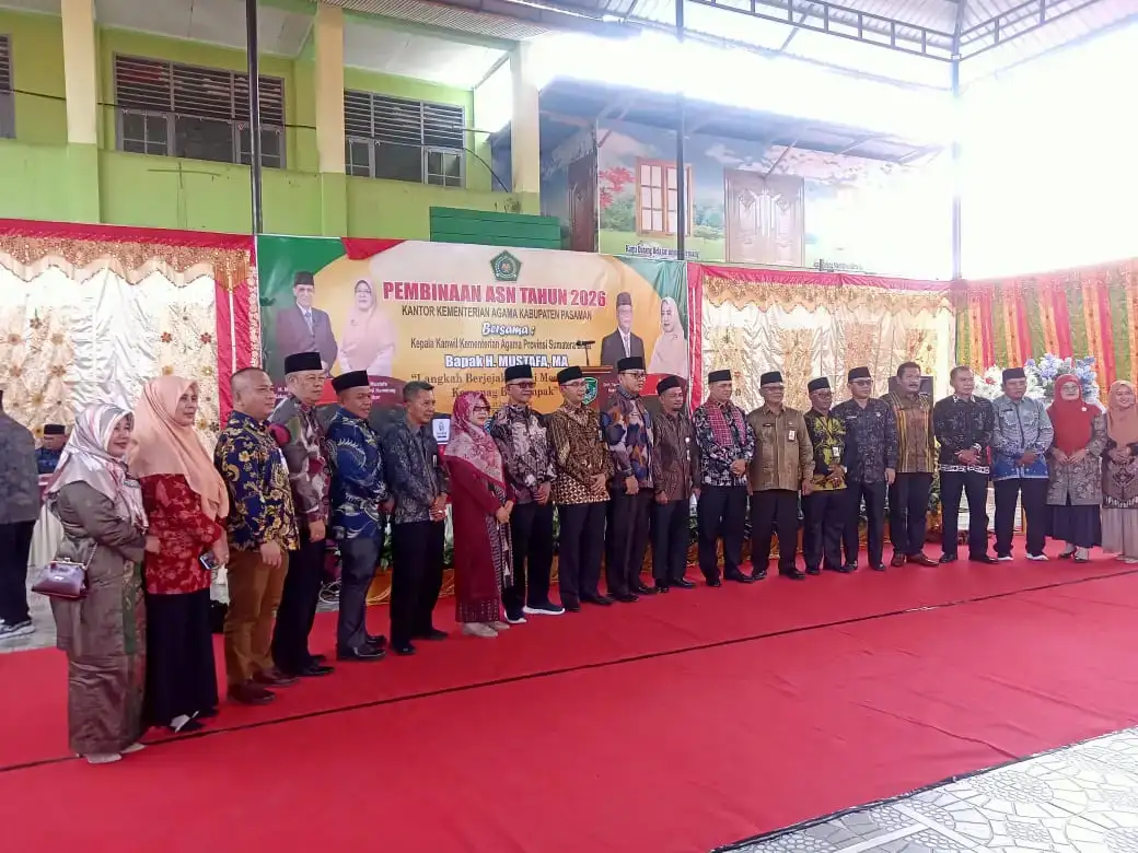 Enam ratusan PNS dan PPPK Kementerian Agama Kabupaten Pasaman, antusias mendengarkan arahan Kepala Kanwil Kementerian Agama Provinsi Sumatera Barat H. Mustafa, dalam acara silaturrahim dan pembinaan ASN di aula terbuka MTsN Lubuk Sikaping, Rabu (21/1/2026)