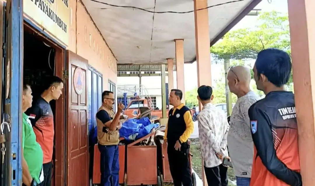 Kalaksa BPBD Kota Payakumbuh Devitra, S.Sos.,M.Si didampingi Kabid Logistik Hepi, S.IP dan Kasi Kedaruratan Yoserizal, SH melakukan pemeriksaan peralatan kebencanaan dan logistik bencana di gudang logistik BPBD di Padang Kaduduak, Payakumbuh Utara, Jum’at (10/04/2026)