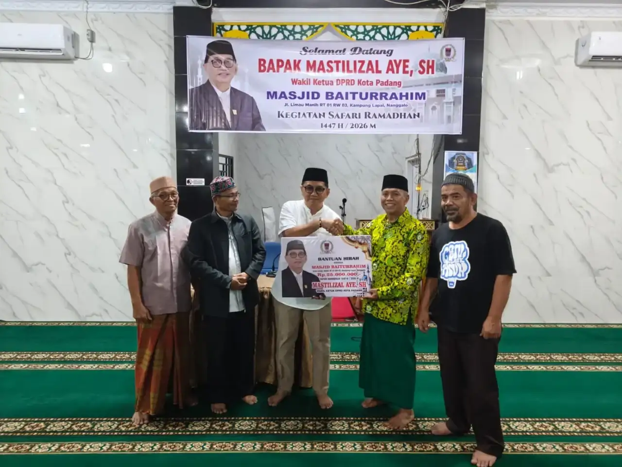 Wakil Ketua DPRD Kota Padang Osman Ayub dalam Safari Ramadhan 1447 H/2026 M menyerahkan bantuan untuk Masjid Al Mujahidin, Jl Jembatan Berok Lama III, Kurao Pagang, Kec. Nanggalo