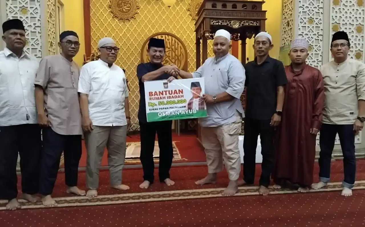 Kesempatan itu Osman Ayub juga menyalurkan Bantuan Hibah Rp25 juta di Masjid Al Mujahidin.