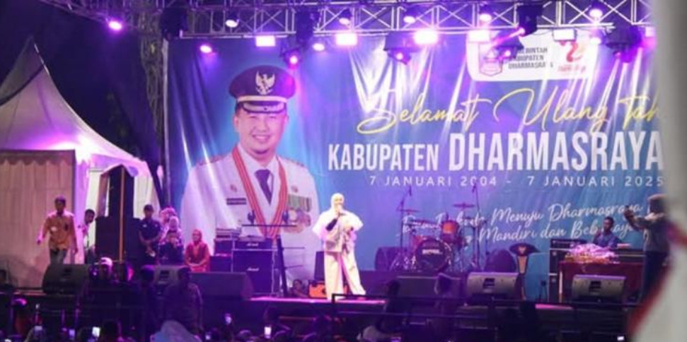 Ketua DPRD Dharmasraya, Jemi Hendra ikut serta menyaksikan penampilan penyanyi kebanggaan Minangkabau, Rayola, sukses memikat ribuan penonton dalam konser perayaan Hari Ulang Tahun Kabupaten Dharmasraya yang ke-21.