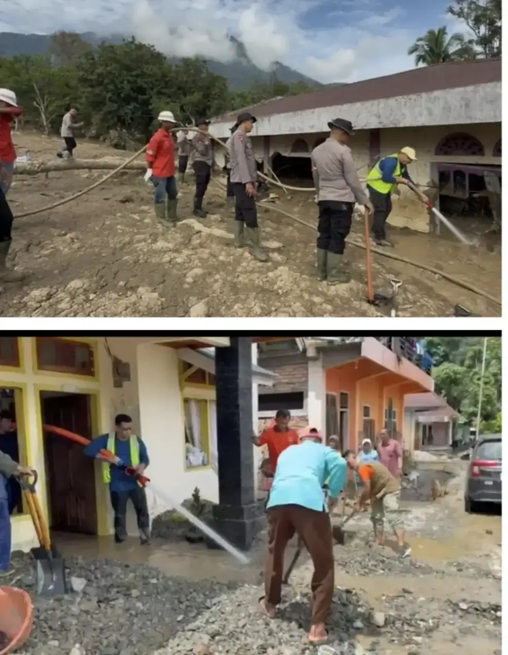 Dari pantauan lapangan, sepanjang Kamis (4/12/2025), proses perbaikan terus berjalan di tiga jorong tersebut. Petugas dari Kepolisian dan TNI serta relawan, terus bahu membahu membersihkan lahan yang terendam tanah bercampur batu. Termasuk bantuan dari petugas dan alat berat serta pendukung lainnya dari PT Bukit Raya Mudisa (BRM) yang bergabung dengan tim TNI serta BPBD Tanah Datar.