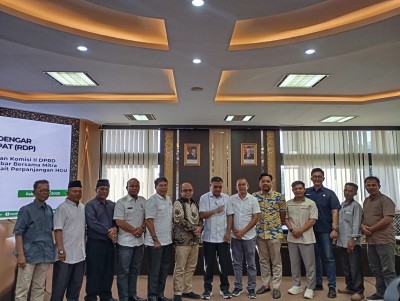 Komisi I dan II DPRD Provinsi Sumatera Barat melaksanakan Rapat Dengar Pendapat (RDP) bersama mitra kerja terkait perpanjangan Hak Guna Usaha (HGU) PTPN VI, di ruang rapat khusus II DPRD Sumatera Barat, Rabu (7/5/2025).