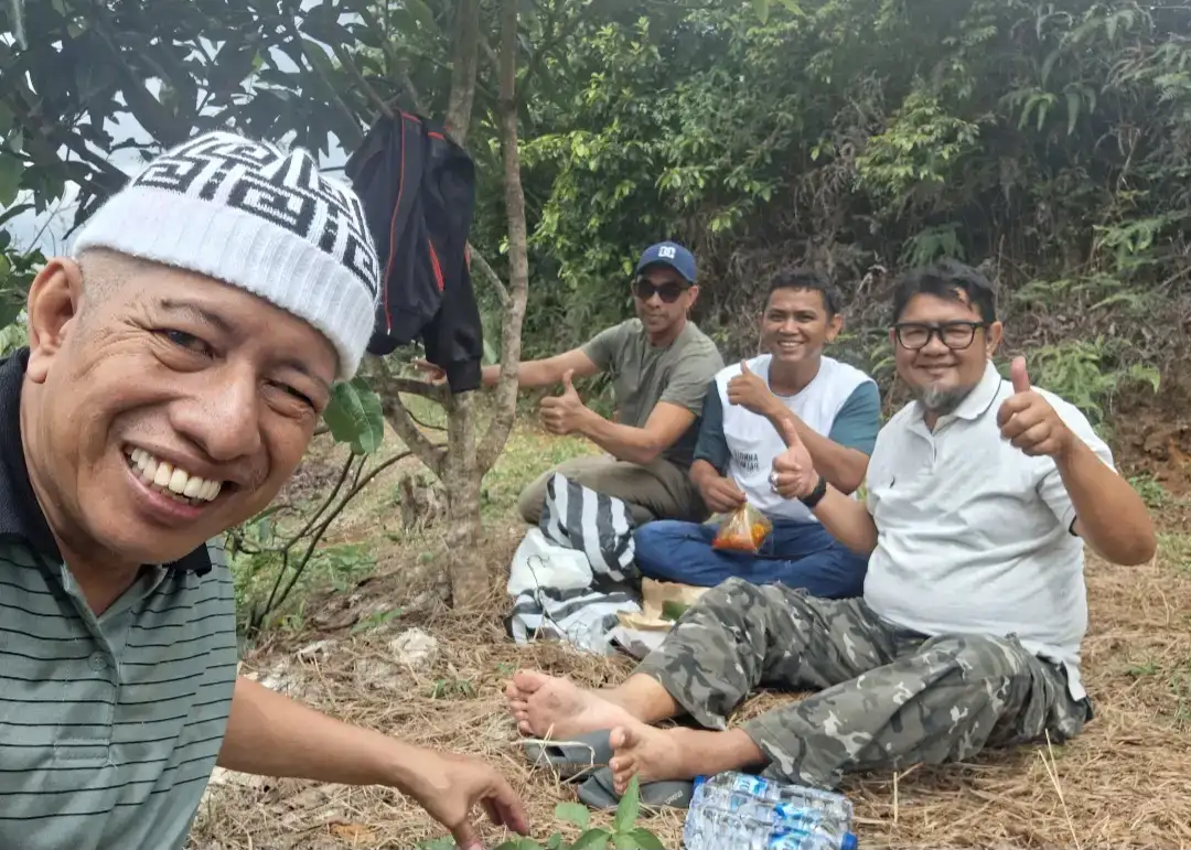 Makan siang sambil bersila di tengah ladang buah naga di Puncak Kacang, Solok