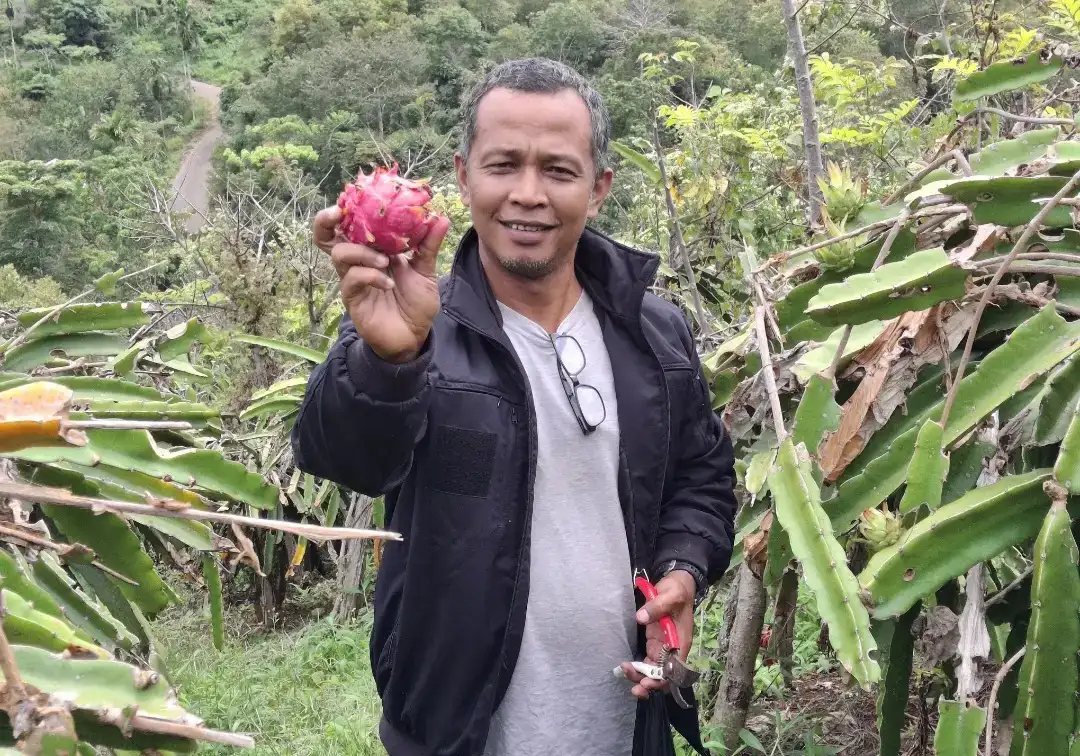 Anton Yose Malin Sati memetik buah naga langsung dari ladang