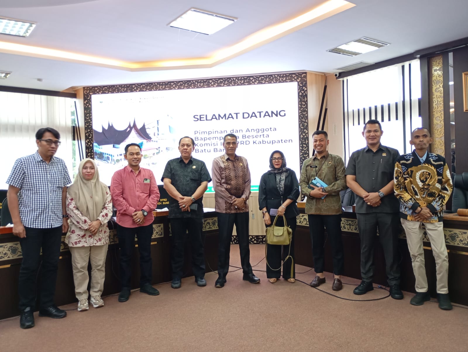 DPRD Provinsi Sumatera Barat menerima kunjungan pimpinan dan anggota Badan Pembentukan Peraturan Daerah (Bapemperda) dan Komisi IV DPRD Kabupaten Batu Bara, Provinsi Sumatera Utara, Kamis (24/4/2025) di ruang rapat khusus II.