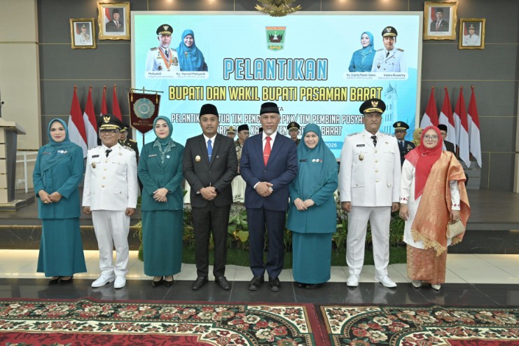 Gubernur Sumatera Barat (Sumbar), Mahyeldi Ansharullah, atas nama Presiden RI melantik Bupati dan Wakil Bupati (Wabup) Kabupaten Pasaman Barat (Pasbar) periode 2025-2030, Yulianto dan M. Ihpan di Auditorium Istana Gubernuran, Selasa (25/03/2025). Gubernur mengingatkan agar keduanya senantiasa menjaga kekompakan, sehingga gerak pembangunan Pasbar dapat dilakukan dengan maksimal.