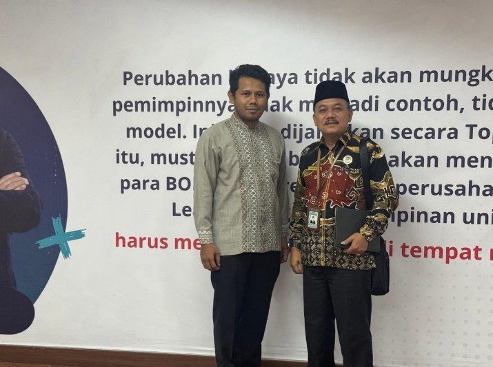 Kepala MAN 2 Padang, Ahmad Asdi, bersama tim IT madrasah, Zulfikri, mengikuti Sosialisasi Digitalisasi Pendidikan melalui Platform Terintegrasi Telkom. Kegiatan berlangsung di Ruang DILO Telkom Witel Sumbar Jambi, Padang, Kamis (21/8/2025).