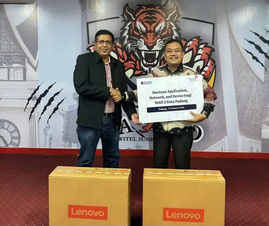 Bantuan tersebut meliputi aplikasi, jaringan (network), serta dua unit komputer bermerek Lenovo yang diserahkan langsung oleh General Manager (GM) Telkom Witel Sumbar–Jambi, Muhammad Ihsan, kepada Kepala MAN 2 Padang, Ahmad Asdi, Rabu (28/1/2026).