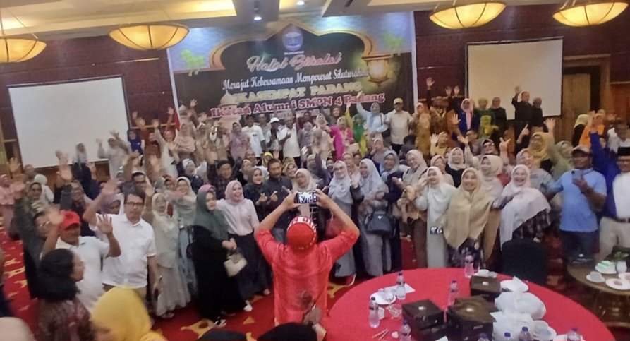 Pengurus Pusat Ikatan Alumni SMPN 4 Padang (PP IKASEMPAT) mengadakan kegiatan Halal Bihalal pada hari Minggu (20/4/2025) di Ballroom Basko Hotel. Ratusan alumni lintas angkatan hadir meramaikan acara tersebut.