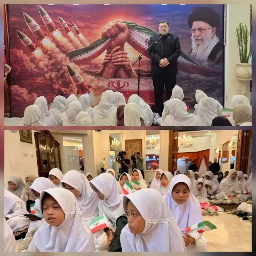 Hari Sabtu, 14 Maret 2026, sebuah acara doa bersama dan peringatan untuk mengenang 175 anak yang syahid dalam serangan AS dan Zionis Israel terhadap siswi SD di kota Minab diselenggarakan di kediaman Duta Besar Republik Islam Iran di Jakarta dengan dihadiri oleh anak-anak Indonesia.