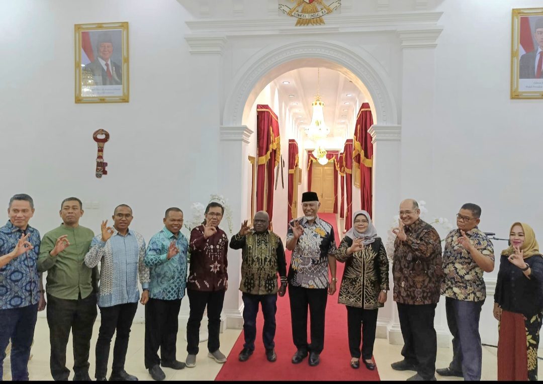Gubernur Sumatera Barat (Sumbar) Mahyeldi Ansharullah menggelar pertemuan terkait Instrumen Hak Azazi Manusia (HAM) dengan Menteri HAM Natalius Pigai di Istana Gubernur, Jumat (17/10/2025).
