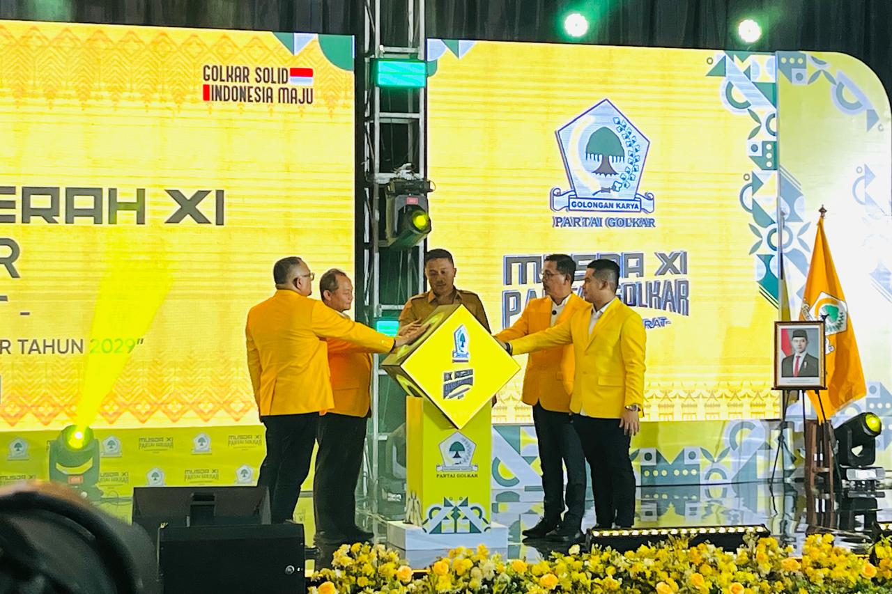 Sekjen Partai Golkar Sarmudji dan Wagub Sumbar Vasko Ruseimy saat pembukaan Musda XI Partai Golkar Sumatera Barat